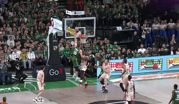 Tuo metu pirmoje vietoje atsidūrė Atėnų „Panathinaikos“ komandos ataka, kuri baigėsi Kendricko Nunno galingu dėjimu į „Dubai“ krepšį.
